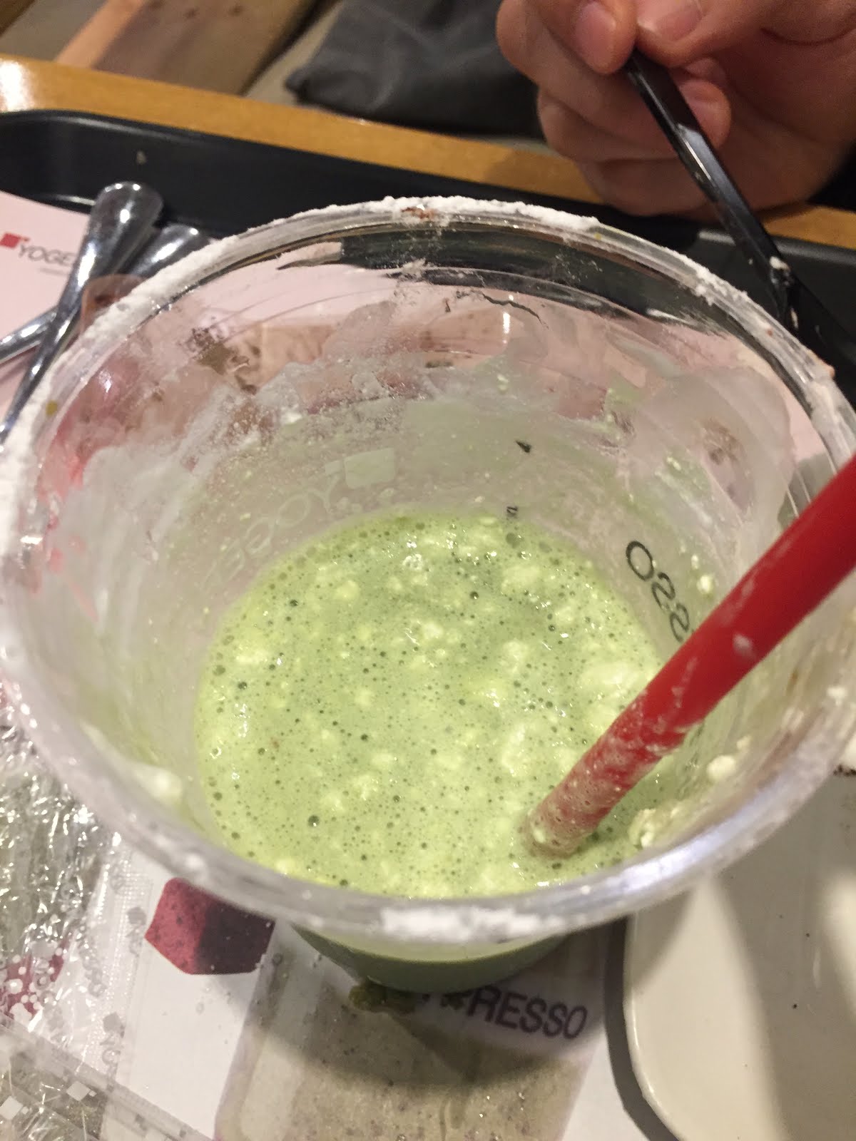 ok~把優格通通吞下肚裡後就會出現抹茶冰沙了!